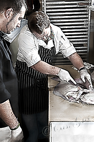 Some tips from Chef Chad White at Sea Rocket is always clean your fish before you start cutting and your knife between each cut to avoid scales getting onto the meat.