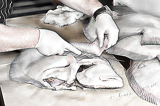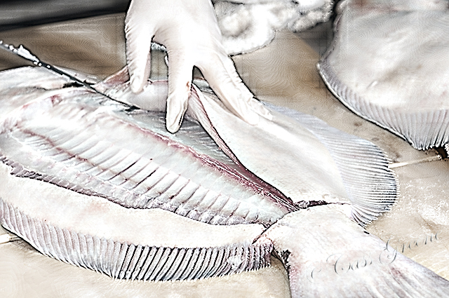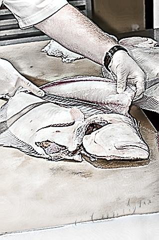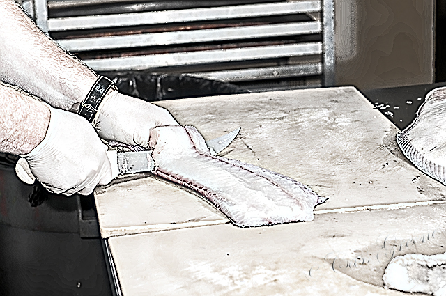 Use sharp knives when cleaning, deboning, and skinning your fish. Avoid serrated blades also. Dull edges, as well as serrated ones, have an annoying tendency to tear through the meat of the fish, not slice through it. Do not “saw” … use a smooth fluid motion…..